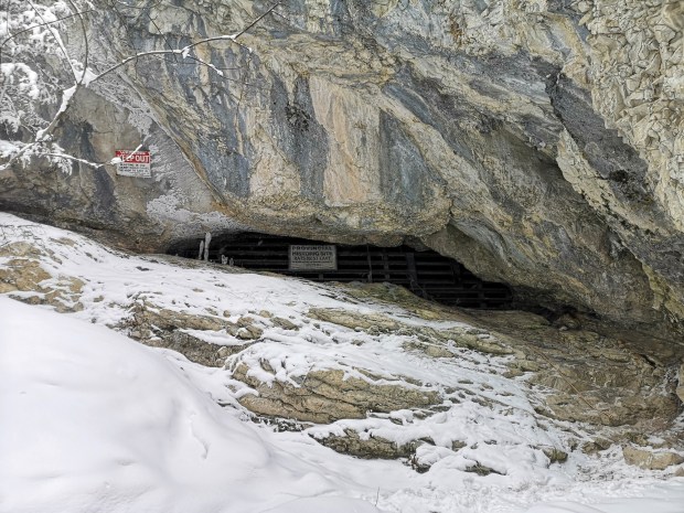 Getting to the cave entrance was also quite challenging especially given my winter boots. I had to take off my cleats so I had significantly less traction. My Uggs were against rocks and ice. There was a lot of using my knees to propel myself up and gramps helped me up a bit (it was the guide, myself, a teenager, her very healthy and capable 60+ grandpa).